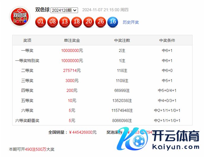 双色球第2024128期开奖,红球:01、08、13、18、20、26;蓝球:16。其中红球012路比为1:2:3,蓝球开出1路号码。