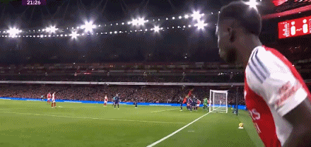 第22分钟,萨卡角球开到禁区被奥纳纳双拳击出,随后托马斯头球顶高