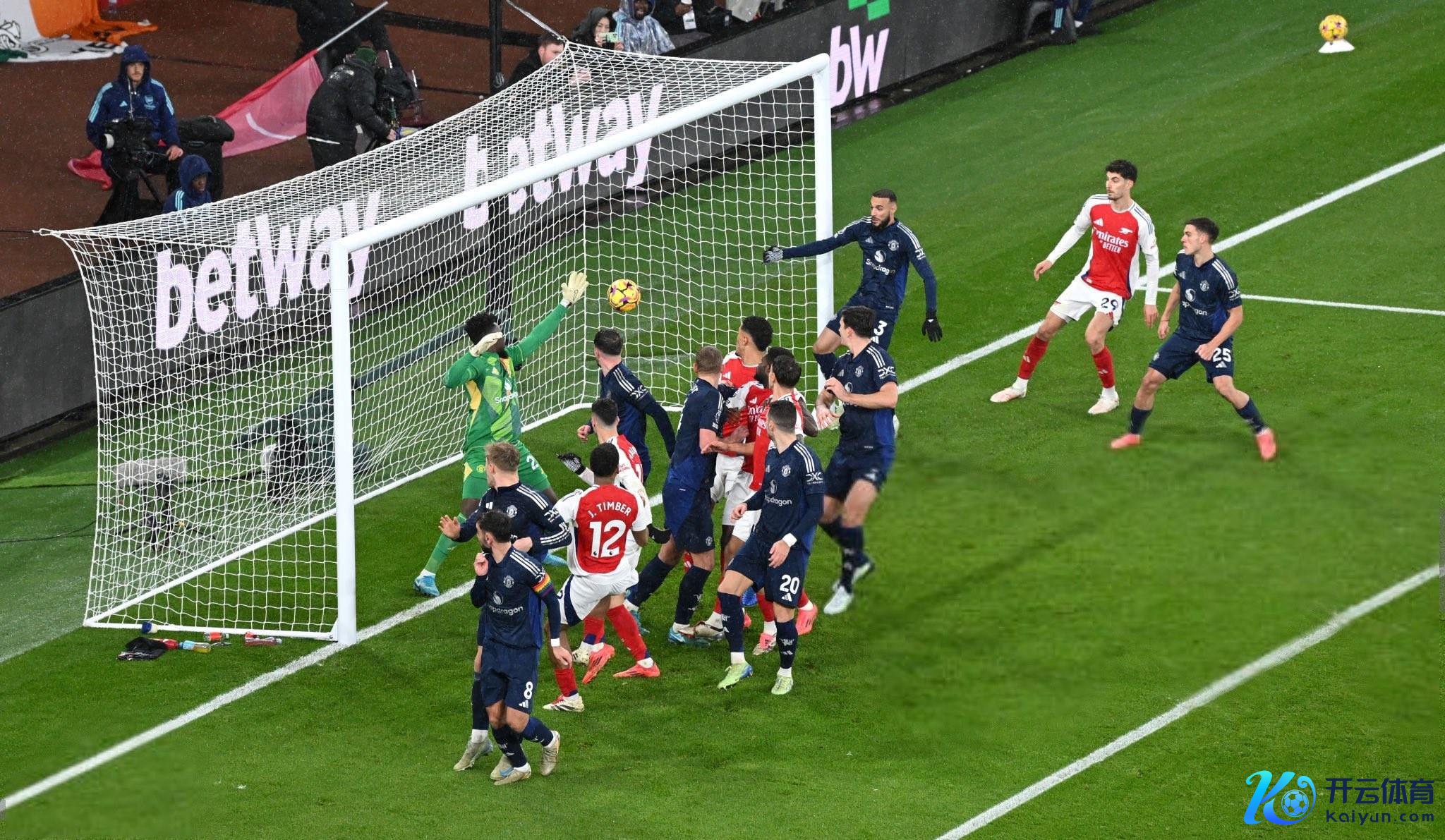 第90分钟,赖斯开出角球,奥纳纳扑球打在廷贝尔头上又差点弹进球门
