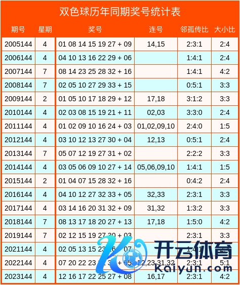 双色球积年同时数据统计表