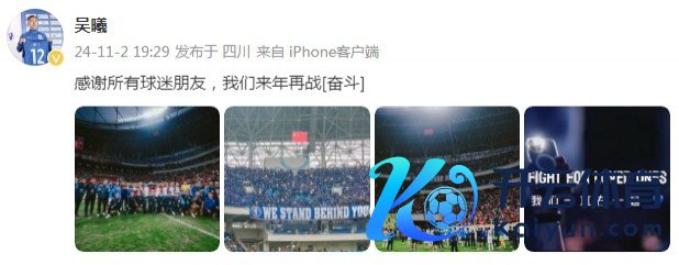 赛后,吴曦在社媒晒出全队合影以及谢场相片,他为此配文写谈:“感谢所有球迷一又友,咱们来年再战!”