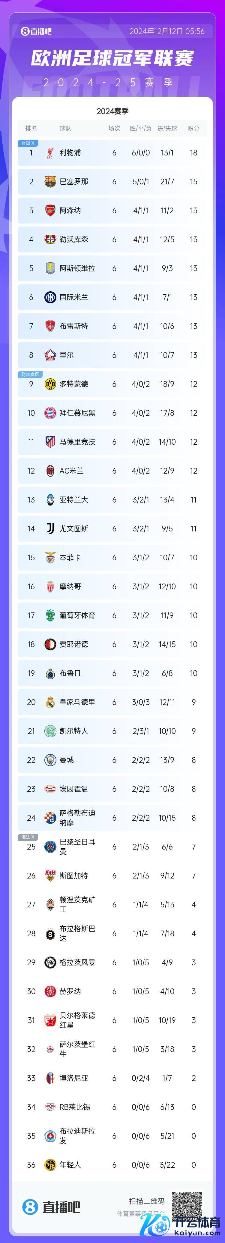 意甲:国米(6)、米兰(12)、亚特兰大(13)、尤文(14)、博洛尼亚(33)