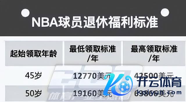 把柄NBA退休金的计较国法,在45岁时,申领退休金的圭臬是按照306.34好意思元×过问赛季年限×2/3。