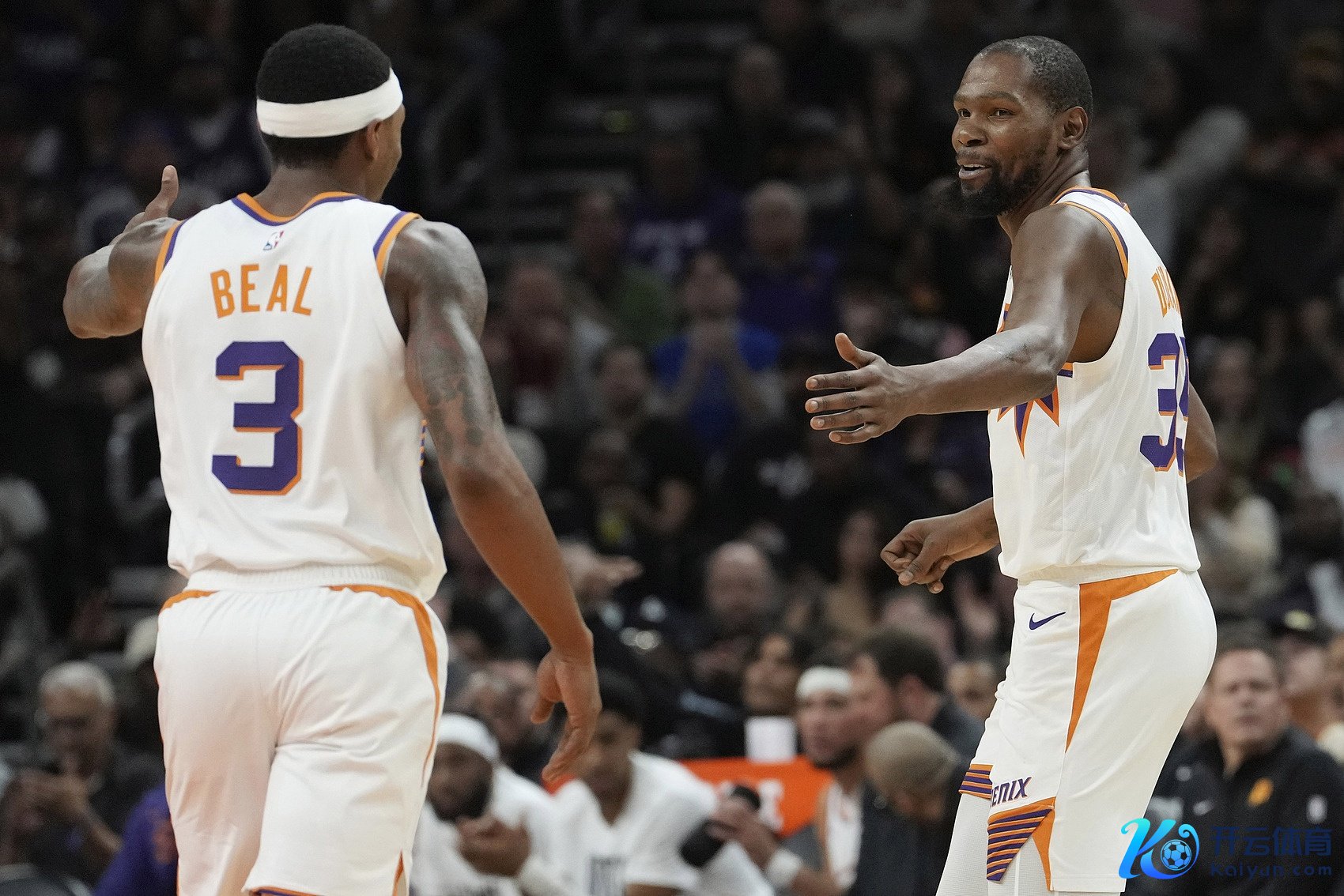 此役,杜兰特20投14中,获得35分4篮板6助攻;比尔10投7中体育赛事直播,获得17分5篮板3助攻。
